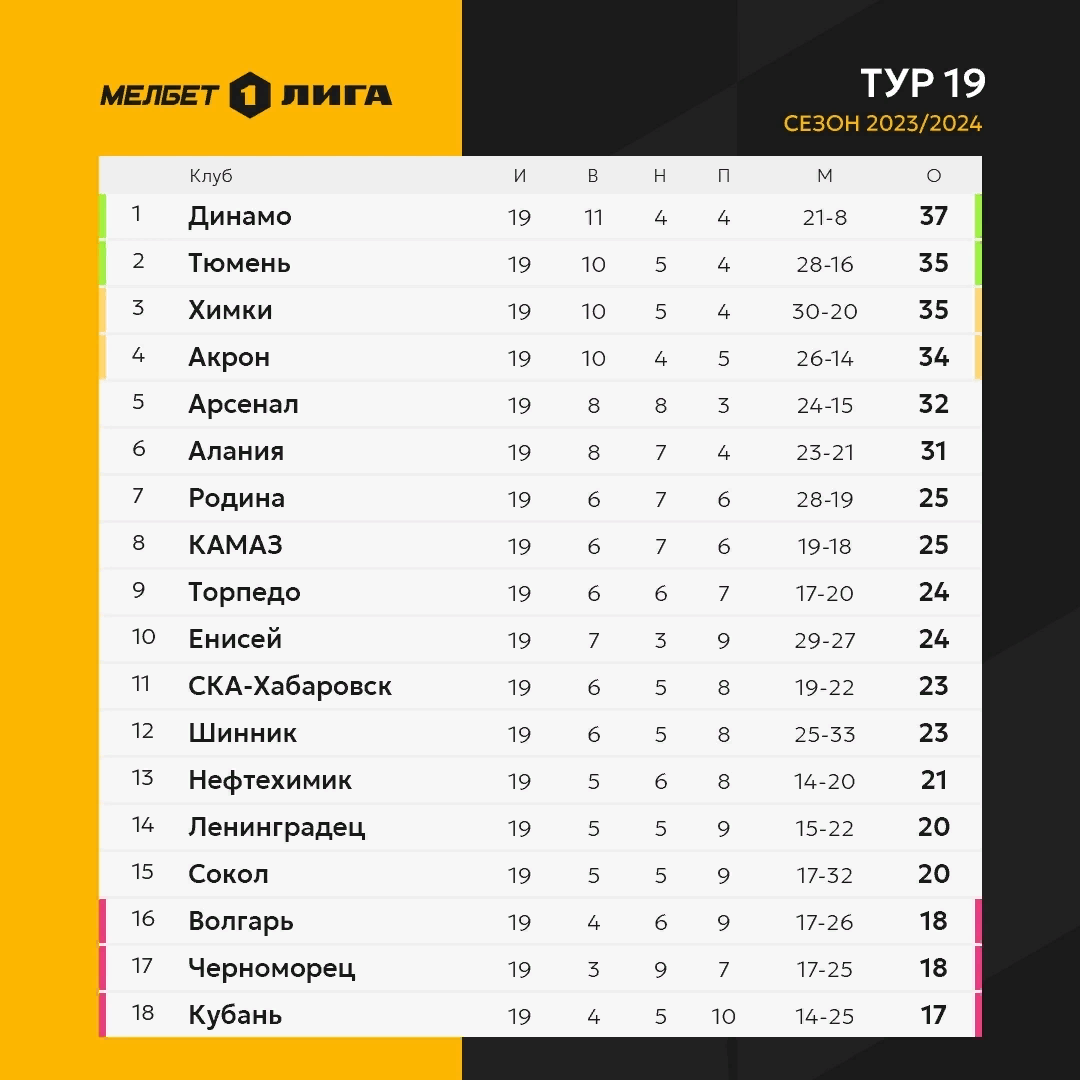 18-20 ноября был сыгран 19-й тур в первой лиге.