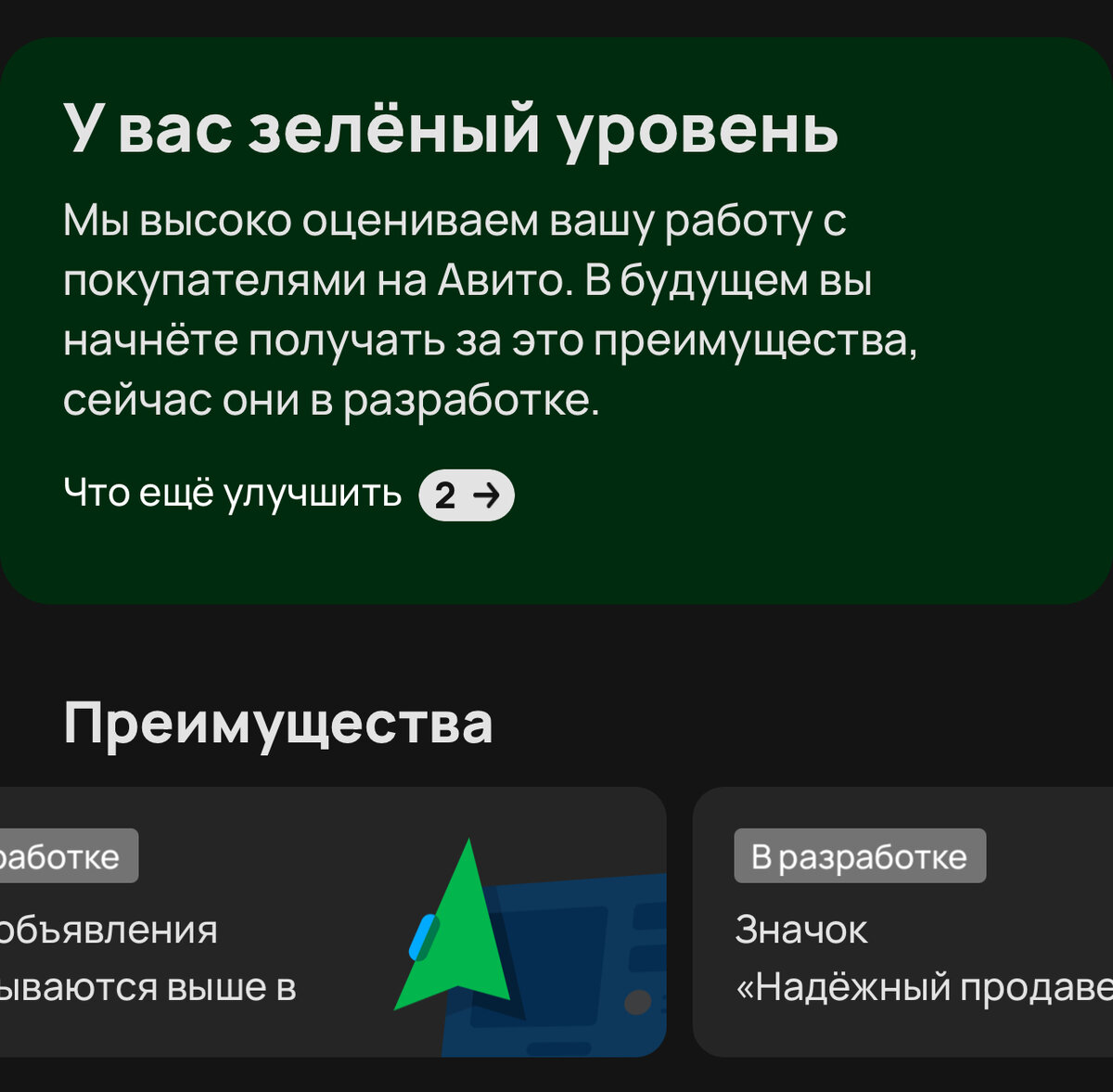 Давайте разбираться вместе. Пока данная функция на Авито еще в разработке. И этот заветный значок отличия получили совсем немногие продавцы. Но совсем скоро Авито начнет выдавать этот знак отличия самым проверенным профилям. А пока, разберемся, что же нужно, чтобы получить в дальнейшем этот отличительный заветный знак. Для начала, отмечу, что статистика собирается в течении 30 дней. Сайт анализирует ваши действия за месяц и так сказать делает выводы о Вас. У меня уже зеленый уровень. Что делаю я: Вот, пожалуй, главные пункты, которые нужно выполнять, чтобы получить Зеленый уровень на Авито. Теперь ждем значок «надежный продавец». Поделитесь в комментариях, кто нибудь уже получал такой знак отличия? Как часто встречали продавцов с такими пометками?, пожалуй, главные пункты, которые нужно выполнять, чтобы получить Зеленый уровень на Авито. Теперь ждем значок «надежный продавец». Поделитесь в комментариях, кто нибудь уже получал такой знак отличия? Как часто встречали продавцов с