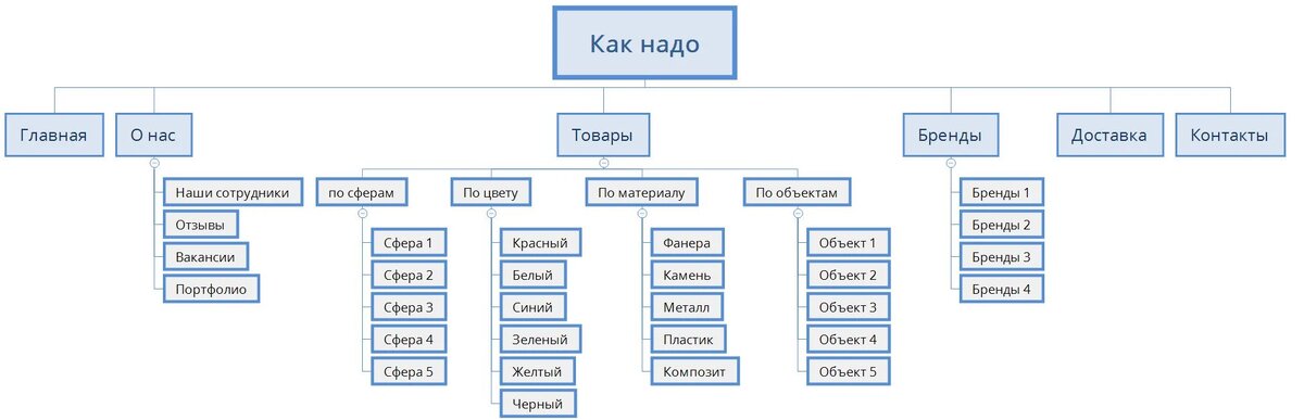 Структура зависит от типа сайта:
