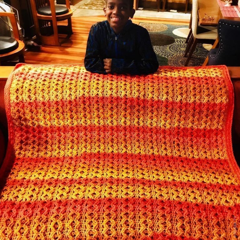 Джон Ларсон родился в 2008г. в Эфиопии, усыновлен в США. Возможно холодные снежные зимы в Висконсине способствовали вязанию. А родители на его пятилетие подарили Джону набор для вязания.