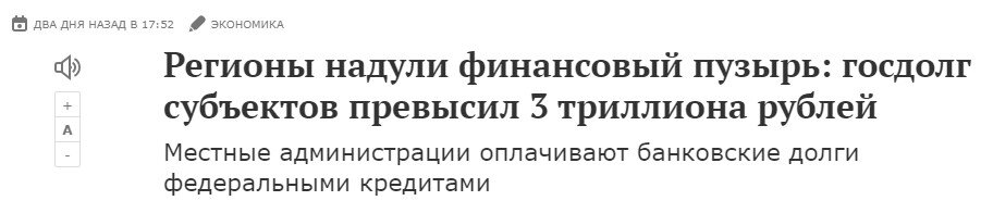 Но сейчас я вам подкину новую пищу для размышлений: в российских регионах (которые тоже являются субъектами хозяйствования и могут одалживать деньги для своих нужд) ситуация с долгами сложилась еще хуже, чем на федеральном уровне.