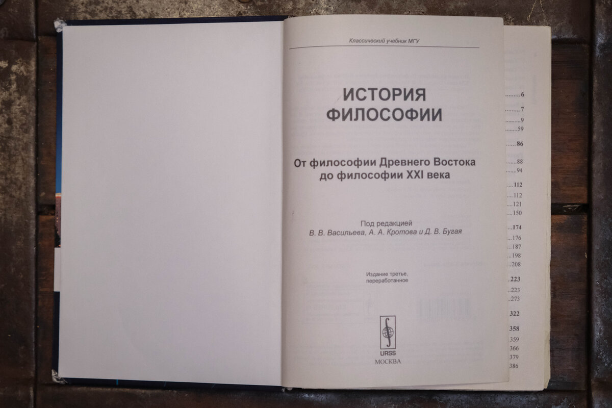 Эта мудрость принадлежит Сократу, и актуальна она во все времена. И мы сегодня чуть углубимся в философию, так как речь пойдёт о классическом учебнике МГУ 2014 года. Издание «История философии», хоть и сравнительно новое, пришло в мастерскую с потёртым переплётом и полностью отсутствующим корешком. Конечно, из-за этого блок был ослаблен, что отразилось бы на сохранности страниц без реставрации. Мы изготовили новый переплёт глубокого фиолетового цвета с мраморным рисунком. Страницы перешили и крепко закрепили на корешок. В результате учебник обрёл строгий стиль и, что самое главное, новую жизнь. Университетские учебники, особенно таких престижных ВУЗов как МГУ им. Ломоносова, ценятся своими материалами. И это не удивительно, ведь философский факультет славится талантливыми выпускниками, которые нередко оставались и остаются работать на кафедре и уже сами пишут учебные пособия для университета. Например, один из авторов учебника – А.А. Кротов по сей день трудится в МГУ. Наряду с медицин