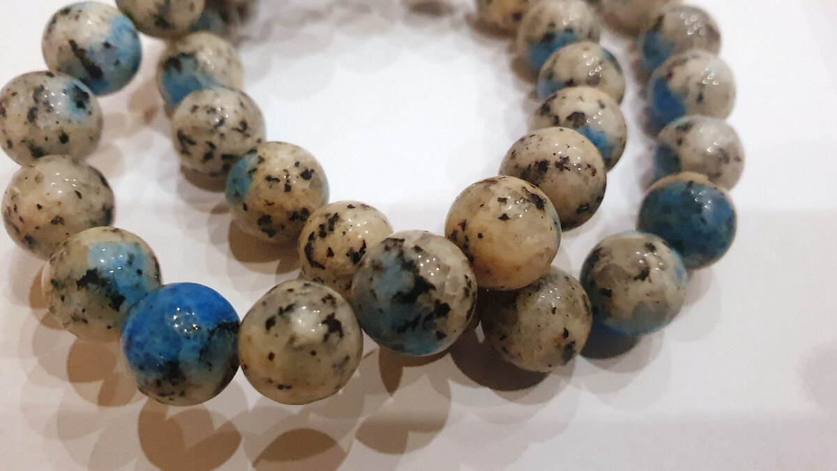 В каждой бусине - словно маленькая планета со своим уникальным соотношением "суши, воды и воздуха" - бежевого и графитового, голубого и белого оттенков.