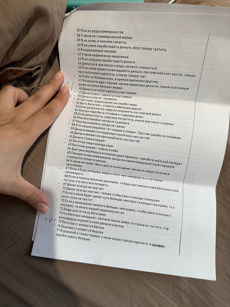 Прикрепила фотки с 116 вариантами убеждений про деньги.