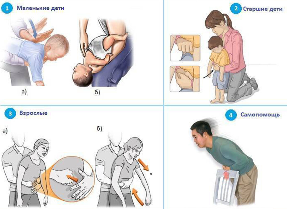 Если же предыдущие шаги не помогают, следует продолжать чередовать 5 ударов по спине с 5 толчками в живот до тех пор, пока дыхание не восстановится полностью или хотя бы частично.