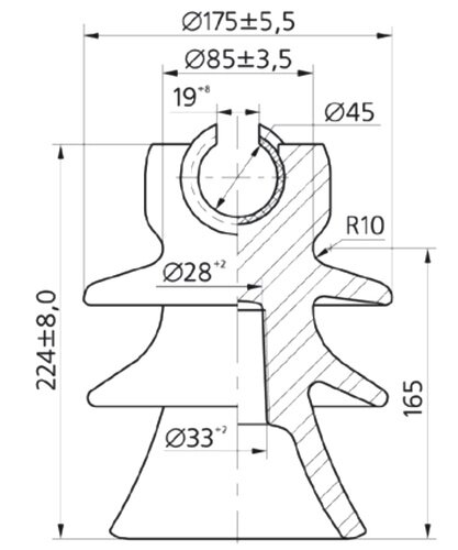 Изолятор ШФ-20Г1 используется на ЛЭП с изолированными самонесущими кабелями (СИП). Номинальное напряжение устройства – 6, 10, 20 кВ. Провода укрепляются в желобке или на шейке штыревого изолятора. Штыревыми изоляторы называются по своей конструкции: изолирующие части устанавливаются на специальный стандартный штырь, а крепление выполняется специальными колпачками. Материалом, из которого изготавливаются изоляторы ШФ-20Г1, является электротехнический фарфор, поверхность с покрытием глазурью. Технические характеристики изоляторов ШФ-20Г1 Механическая разрушающая сила при изгибе, не менее - 13 кН