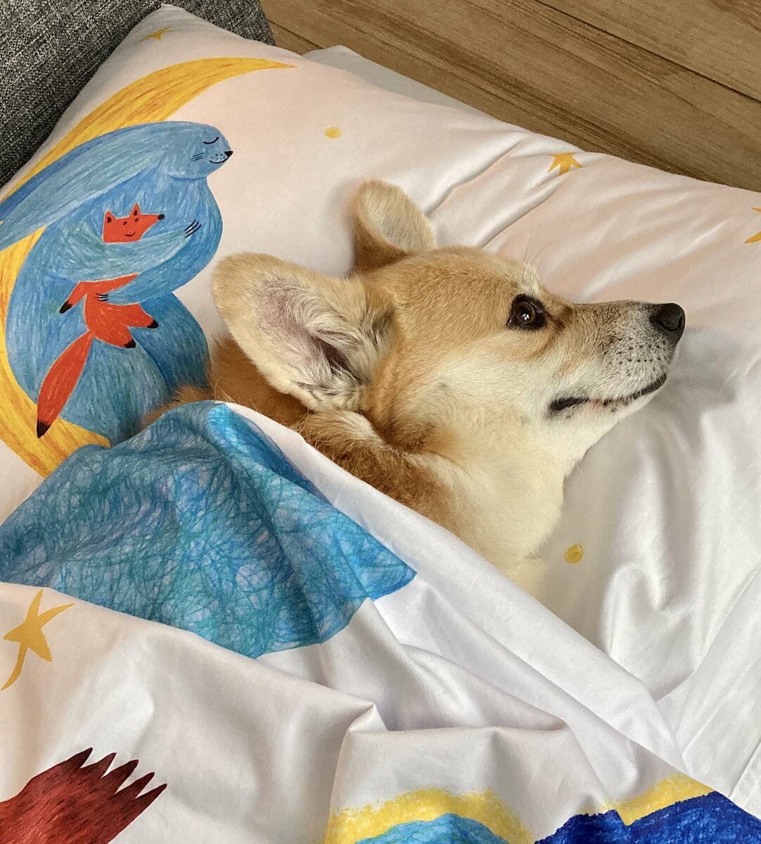 Привет! Это я, корги Оливер. Не подумайте, что раз я такой милый, то ничего не делаю, только ем, сплю, бегаю и играю. Вот уж нет, весь дом на мне! Кто контролирует качество блюд на завтрак, обед и ужин? Я. Кто инспектирует пакеты с продуктами, которые приносят из магазина? Опять я. Кто проверяет, из чего сделаны тапочки нашей девочки Саши? И это я! А тут Саше подарили новое постельное белье. Да еще какое-то необычное, с мягким игрушечным зайцем. И я подумал: а вдруг Саше такое не понравится? Пришлось, как всегда, протестировать, рискуя собой (иногда мне слегка влетает от хозяев за внеплановые проверки, но долг прежде всего!). Ну, что я вам скажу? Хорошее. Ткань приятная: плотная, гладкая, шелковистая. Когти не цепляются, шерсть не прилипает. Белоснежная – белее, чем мои лапки! И никаких посторонних запахов – а уж мой-то нос не проведешь. Звери забавные нарисованы. Но понятное дело, что самый лучший в мире зверь – это я, так что тут мне сложно быть беспристрастным. А с Зайцем я подружил