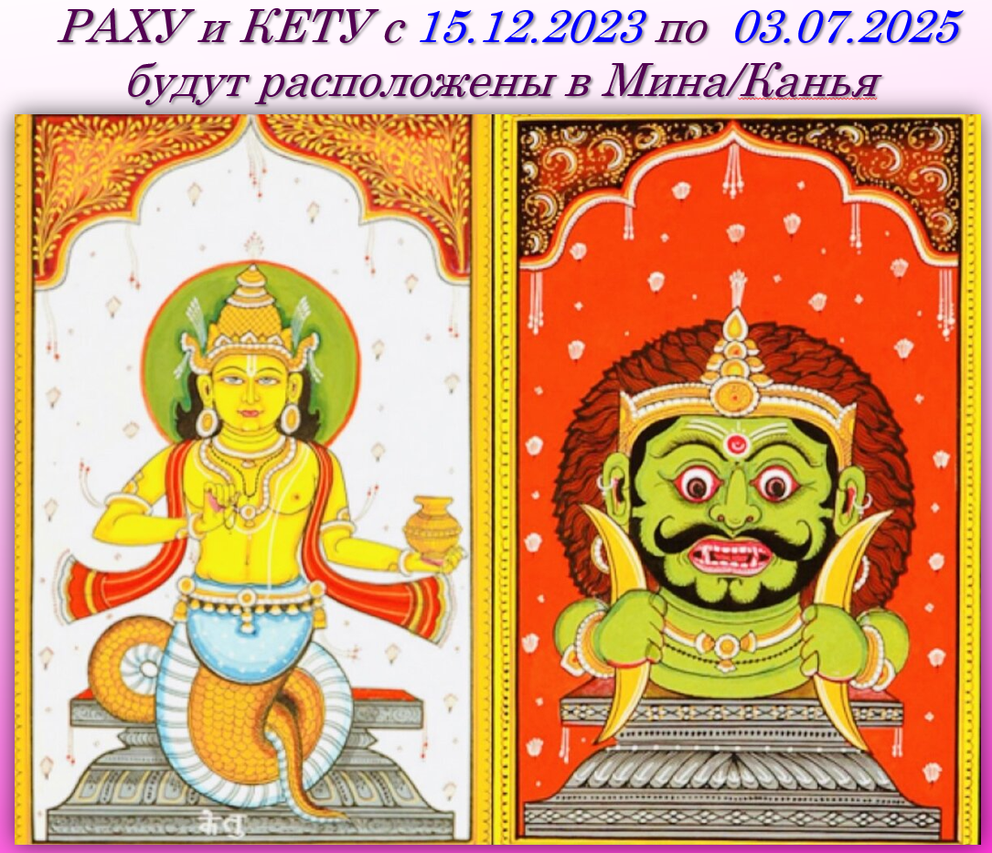 Раху переходит из ♈ Меша (Овна) в ♓ Мина (Рыбы), а Кету переходит из ♎ Тула (Весы) в ♍ Канья (Деву).