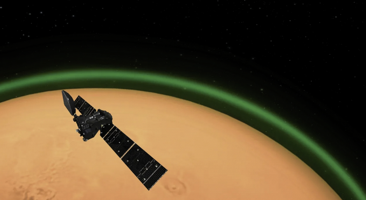 Марс называют Красной планетой, но, как оказалось, это и еще более красочное небесное тело. Об этом свидетельствует новое открытие ученых, которые впервые в истории наблюдали, как атмосфера Марса окрашивается в ... зеленый. Астрономы давно предполагали, что на Марсе существует феномен ночного свечения, при котором атмосфера планеты окрашивается в зеленый цвет, но до сих пор не могли подтвердить эту догадку. Однако ситуация изменилась благодаря зонду Европейского космического агентства ExoMars, который находится на орбите в 400 км над Марсом и, что интересно, наблюдает это явление в обычном видимом свете. ESA "Когда будущие астронавты будут исследовать полярные области Марса, они увидят зеленое свечение, освещающее ночное небо. При ясном небе такое свечение будет достаточно ярким, чтобы освещать путь им и их марсианским аппаратам", - говорится в сообщении агентства, сопровождающем открытие. ЕКА добавляет, что подобное явление возникает при слиянии двух атомов кислорода на высоте более 5