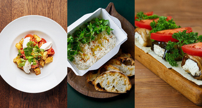 Салат с печеными баклажанами, томатами и сливочным сыром