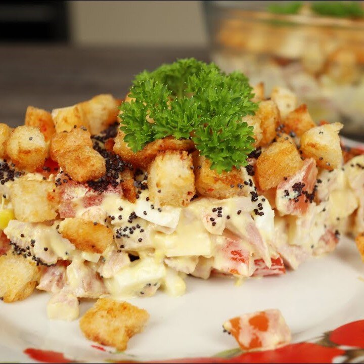 - нарезаем кубиками сыр и отправляем к остальным компонентам