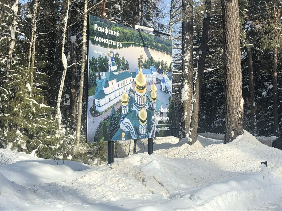 Раифский Богородицкий мужской монастырь находится в 30 километрах от Казани. Добраться до него можно на автобусе от Северного вокзала или на автомобиле - сначала по трассе в направлении Зеленодольска, затем свернуть направо (есть указатель). С извилистой лесной дороги через 3 километра вам надо свернуть влево, тоже есть указатель. Справа от вас будет стоянка. Если приехали на автомобиле, оставьте его здесь. Стоянка платная. Маршрутный автобус вас высадит на остановке, и вам надо будет перейти дорогу и свернуть влево с дороги. Если с дороги идете пешком, то пройдете мимо интересного памятника - “Примирение”. Поставлен он в 2006 году, архитектор - Александр Лопаткин и скульптор Владимир Савельев. Посвящен он трагическим событиям, разыгравшимся здесь после революции. Раскрывая заговор белогвардейцев и разыскивая их, красногвардейцы ворвались в монастырь. В итоге четверо из солдат погибли. Позже чекисты отомстили за своих товарищей. Были расстреляны священнослужители. Памятник не случайно