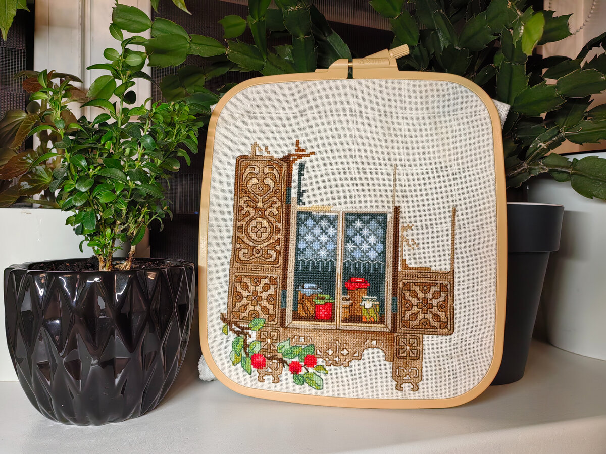 Приветствую, друзья! Растет потихоньку мое уютное окошко от Риолис 🤗 Начало истории, что это за набор, можно почитать тут👇 В этой статье хочу сохранить фото промежуточных итогов, потому что с завтрашнего дня я начинаю новый процесс - пора уже вышивать НГ❄️🙂 На сегодня готовность окошка - 55%, сделано 5687 крестиков и 2506 стежков бэкстича. Всего 29 вышивальных дней с 10 октября. Чуть больше месяца вышивать всего один процесс - для меня это достижение 😁 Все потому, что эта вышивка воистину прекрасна! Не часто бывает, чтобы процесс доставлял столько удовольствия! Я берусь за другой не потому, что надоело, просто хочется успеть вышить что-нибудь тематическое к празднику 🥰 а лучше даже не одно 😁 Благодарю за внимание ❤