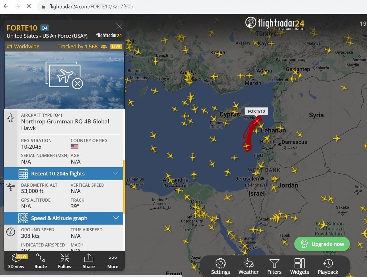 США к 15 ноября направило свой самый большой беспилотный самолёт-разведчик в Газу после систематического им сбора данных у берегов Крыма и Краснодарского края. Разведывательный крупнейший беспилотник США Northrop Grumman RQ-4B Global Hawk с позывным FORTE 10 в понедельник в очередной раз собирал информацию в акватории Чёрного моря вблизи Крыма и Краснодарского края. Но накануне беспилотник, базирующийся на авиабаза на острове Сицилия в Италии, сервис круглосуточного слежения полётов flightradar24 зафиксировал в Средиземном море у берегов Израиля. Теперь НАТО следит за событиями в Газе Технические возможности позволяют RQ-4B Global Hawk собирать данные на расстоянии свыше 200 километров, в радиусе его разведывательных действий находится и Газа, где Израиль проводит военную операцию против боевиков ХАМАС. Ранее Минобороны РФ заявляло о сборе беспилотником информации для помощи ВСУ при организации диверсий и терактов. Полёт FORTE 10 Сейчас, по всей видимости, США больше интересны события