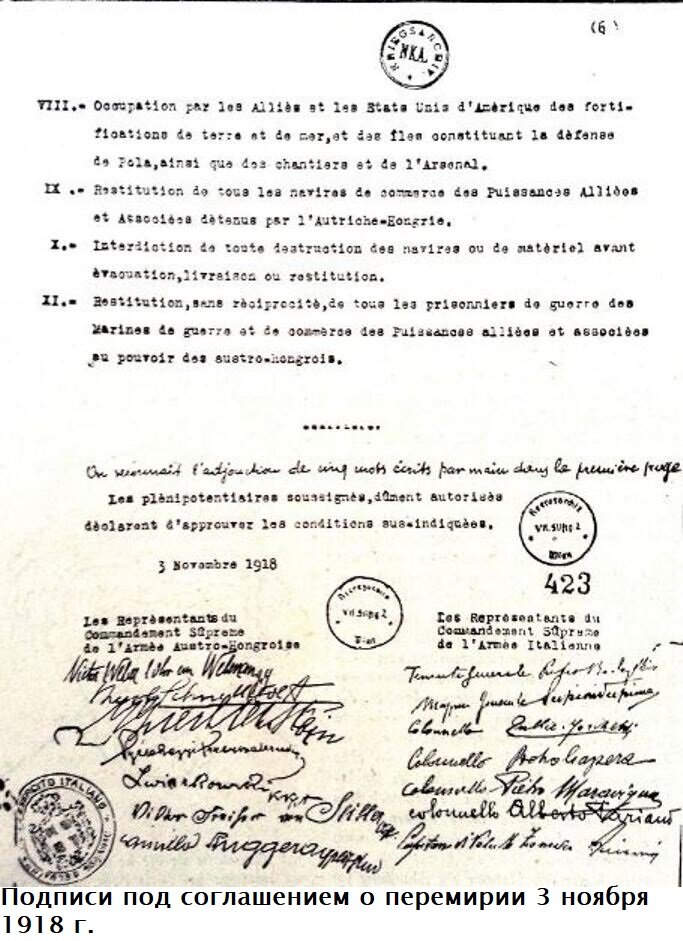 3 ноября 1918 г. руководство Антанты заключило перемирие и с Австро-Венгрией. Германия осталась одна против всех союзных стран.