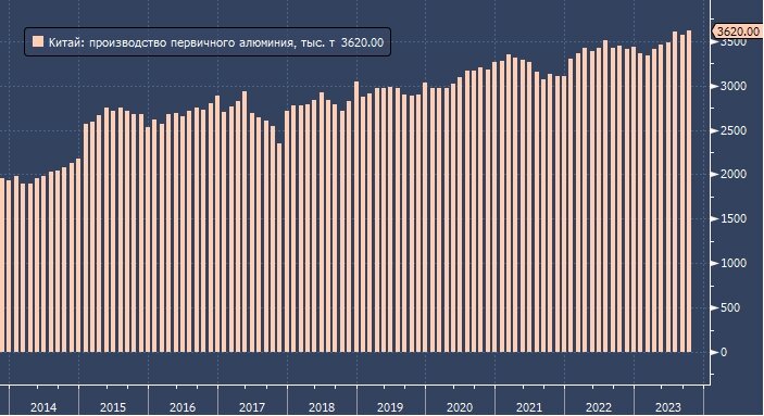 Производство алюминия в Китае достигло рекордного месячного максимума в октябре