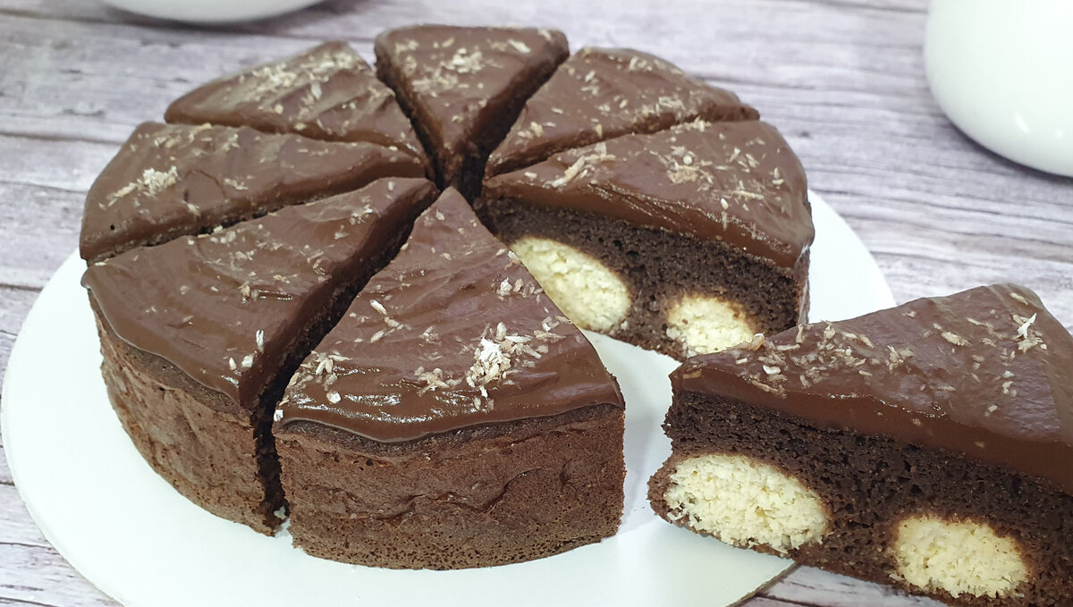 Всем привет👋 В этой статье я расскажу как приготовить простой, воздушный, насыщенно шоколадный пирог с творожно-кокосовыми шариками. Этот рецепт без глютена подходит тем, кто предпочитает правильное питание! ✔️ ТЕСТО: ✔️ ШАРИКИ: ✔️ ГЛАЗУРЬ: Диаметр пирога: 16 см Вес пирога: 600 гр КБЖУ на 100 гр: 184,93/13,77/10,50/8,41 Подсластитель - 1 грамм моего подсластителя пребиосвит фитнес = 10 гр сахара ПРОЦЕСС ПРИГОТОВЛЕНИЯ: Приготовим творожно - кокосовые шарики. В миску поместить творог, желток, стружку, ванилин и подсластитель. Тщательно размять вилочкой до однородного состояния. Скатать из массы, смоченными в воде руками, 10 шариков. Выложить на дно формы диаметром 16 см. Приготовим тесто. Вмиску разбить яйца, добавить белок, подсластитель и соль. Взбить миксером на высокой скорости в течение 5 - 7 минут до увеличения яичной массы в объеме. Влить масло и тёплый кефир, взбить. Всыпать просеянную муку с какао и разрыхлителем, взбить. Вылить тесто поверх творожно-кокосовых шариков. Выпе
