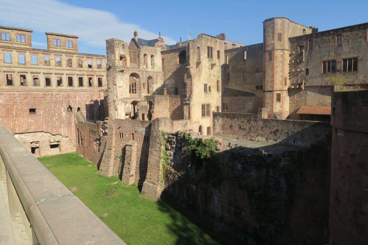 Ну, конечно, первый вопрос - кто развалил? И на него у меня имеется стандартный ответ - как всегда, французы, ещё в конце 17 века. И случилось это - тоже как обычно - в рамках войны за наследство Пфальца. Кто не в курсе: брат короля Людовика XIV герцог Орлеанский был женат вторым браком на Лизелотте Пфальцской. Когда её брат, курфюрст Пфальца, умер и не оставил наследника, это дало основания французскому королю претендовать на всю эту область. Руины Гейдельбергского замка в Германии считаются самыми популярными и пользуются повышенной любовью у азиатских туристов, особенно у гостей из Японии. В принципе я могу их понять - развалины действительно очень мощные и величественные! Особенно поражают размеры. Первое упоминание о замке было задокументировано ещё в 1225 году. При этом в 13 веке уже речь идёт о двух разных замках - верхнем и нижнем. Историки утверждают что первым был построен верхний замок, а современный Гейдельбергский замок - это нижний, и предположительное время его осн