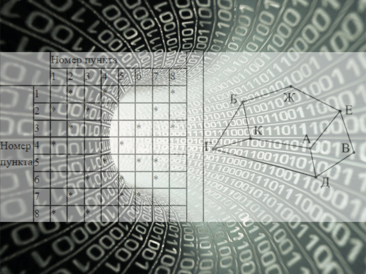 В публикации рассматривается графический метод решения первой задачи из КЭГЕ| Информатика. В интернете можно найти статьи и видео решения задачи на неоднозначное соотнесение таблицы и графа с анализом вершин графа и представленной в таблице информации. В таблице и графе проставляются цифры с количеством ребер, исходящих из вершин. Некоторые задачи такого типа решаются устно. Но есть такие, которые трудно решить, анализируя таблицу. Графический способ порой является оптимальным и не позволяет допустить ошибку. Суть заключается в следующем: По таблице создается новый граф. Вершины графа рисуем по часовой стрелке и нумеруем. Далее, анализируем и сопоставляем граф из задачи и новый граф. Рассмотрим способ решения на двух задачах из открытого банка заданий ФИПИ ЭГЕ| Информатика 2024 Задача №1 (56A17C) Необходимо написать длину в км (целое число) между пунктами В и Г. Решение. В таблице шесть вершин. Поэтому, строя новый граф размещаем по кругу шесть вершин. Затем по таблице соединяем вер