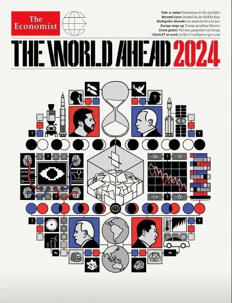 Обложка журнала The Economist 2024 представляет собой композицию из нескольких образов, которые содержат в себе множество символов и намеков на возможные события и тенденции будущего. Анализируя каждый элемент изображения, мы можем получить полноценное представление о том, каким будет мир в 2024 году.