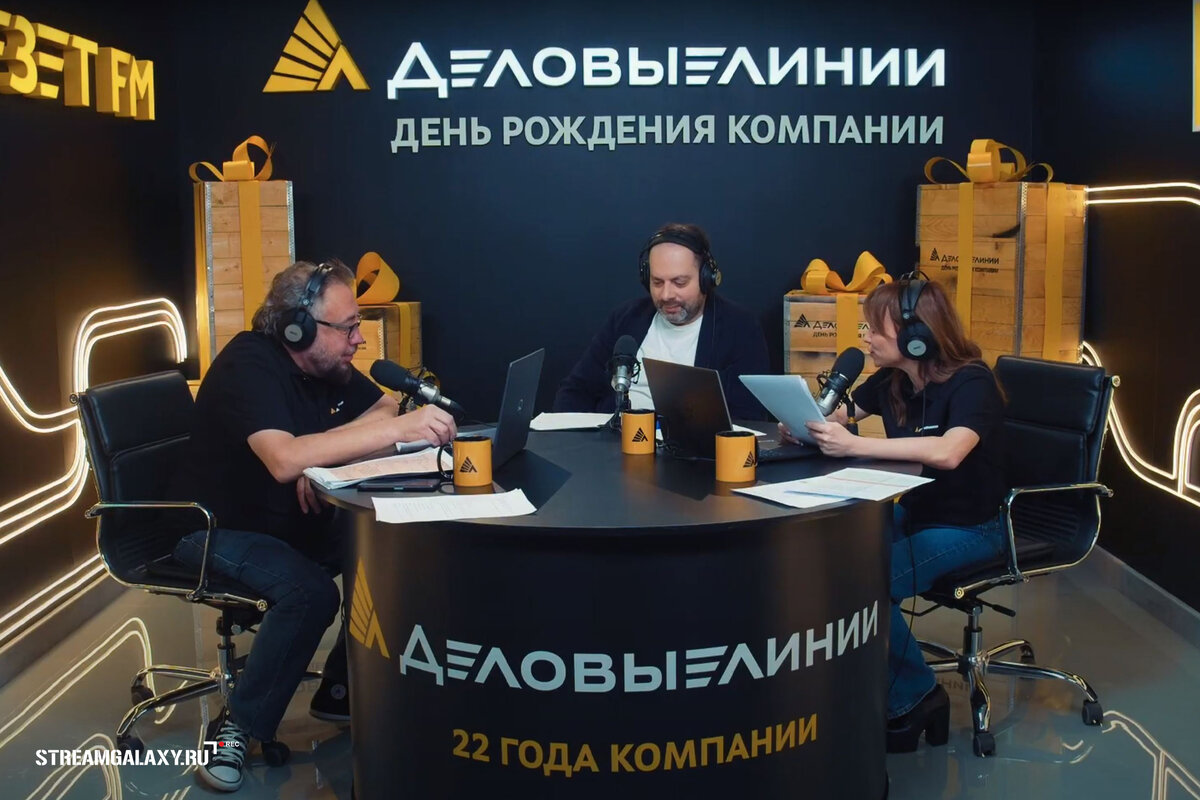 Трехкамерная трансляция в формате радиоэфира с использованием студийного звукового оборудования. 8 сентября мы провели прекрасную и яркую праздничную трансляцию в специально созданной студии для этого события. Мы решили выбрать современный формат аудиоподкаста для создания уникальной атмосферы. Нашим заказчиком выступила известная компания "Деловые линии". Мы поздравляем их с годовщиной и рады были принять участие в этом событии. Проект включил в себя: Бюджет: 190 000 р. Оказанные услуги: Наши контакты: 📞 +7 (958) 111-84-87 📞 +7 (499) 403-33-80 📧 zakaz@streamgalaxy.ru 📧 info@streamgalaxy.ru 📍 Москва, Складочная ул., 1 стр. 7