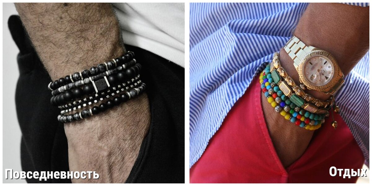 1. Соразмерность. Крупное запястье = крупный браслет. Допустима и охапка мелких, а вот тоненький и изящный допустим, но будет менее эффектен. А вот узком запястье крупные и массивные браслеты табу и запрещенность, т.к. они сделают запястье по-женски хрупким и тонким. Если вам такой эффект не нужен, то не берите. Если нужен, то пользуйтесь лайфхаком. Просто у меня еще не было в практике историй, когда мужчине требовалась хрупкост