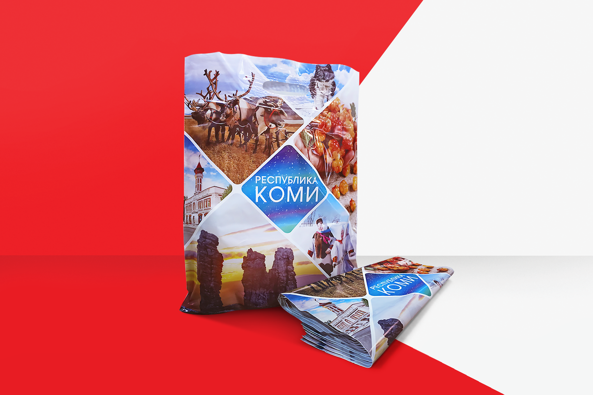 Выбор размера пакета 40х51см был обдуманным – он идеально демонстрировал разработанный дизайн. Пакет толщиной 60 мкм был специально выбран из-за своей плотности. В создании нашего нового пакета для Республики Коми мы столкнулись с вызовами, но с гордостью представляем результаты наших усилий. Нам уда