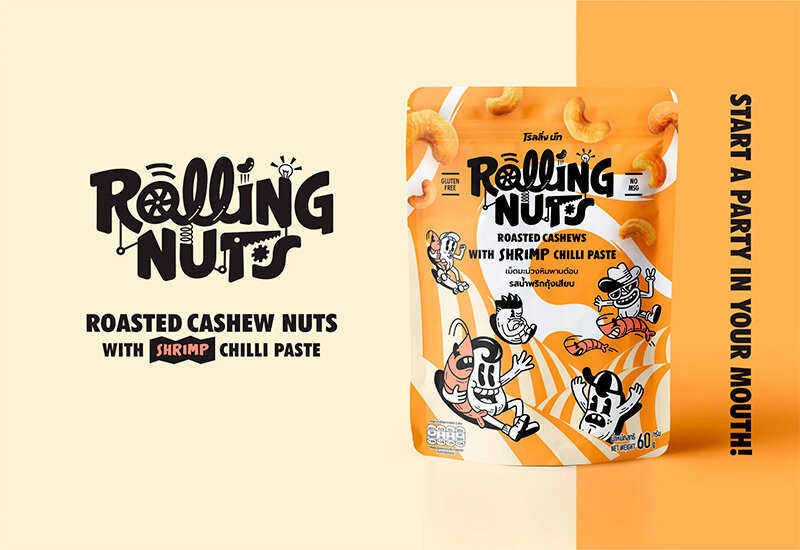Задача: Создать запоминающийся дизайн гибкой упаковки орешков кешью с острой креветочной пастой.