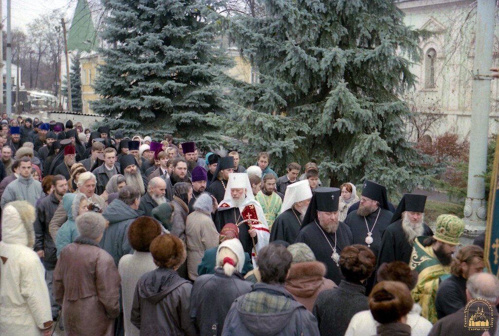 25 лет назад, 16 ноября 1998 г., впервые в современной истории Свято-Успенского Святогорского монастыря святую обитель посетил Предстоятель Украинской Православной Церкви, Митрополит Киевский и всея Украины Блаженнейший Владимир (Сабодан). После торжественной встречи Предстоятеля УПЦ братией обители во главе с наместником архимандритом Арсением в Покровской церкви был совершён молебен преподобному Иоанну Затворнику Святогорскому. После богослужения Блаженнейший Митрополит Владимир обратился с архипастырским словом, которое и сегодня звучит актуально, а во многом пророчески. В начале Блаженнейший поблагодарил священноархимандрита Святогорского монастыря, архиепископа Донецкого и Мариупольского Илариона, наместника обители архимандрита Арсения, всю братию обители за труды по возвращению Святым Горам былого благолепия и заботу о душах тех, кто здесь подвизается и кто сюда приходит в поисках покаяния, ища помощи Божией, мира и умиротворения. Его Блаженство подчеркнул, что нам неизв