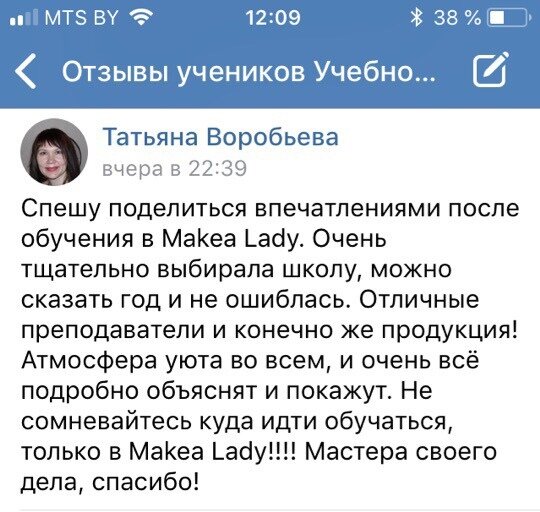 И читайте отзывы наших выпускниц, мастеров о нас. Ждем вас на пробные уроки. Записаться можно здесь - https://vk.com/makea_lady