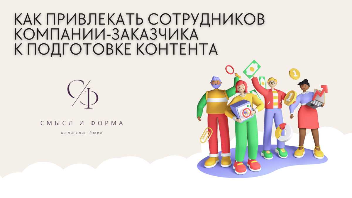 Если вы заказываете услуги в сфере контент-маркетинга, подрядчику обязательно потребуется фактура — информация о вашем продукте, которую он использует для подготовки контента. Это могут быть данные о целевой аудитории, особенностях продукта, статистика продаж и т.д. В любом случае это экспертные знания, и ими могут поделиться сотрудники компании. Какую-то общую информацию может предоставить руководитель, который заказывает услуги, но за конкретикой придется обращаться к специалистам. Также эксперты могут участвовать в профессиональных мероприятиях, представляя на них компанию и участвуя в PR-деятельности. Чтобы вовлечь сотрудников в подготовку контента, надо правильно выстроить эту работу. Сразу отметим, что мотивировать их — задача руководителя, а не подрядчика. Часто советы по этому поводу сводятся к тому, что просто нужно объяснить важность такой работы, но это не так. Главное — чтобы для экспертов подготовка контента имела смысл и у них было на нее время. Тогда они будут считать