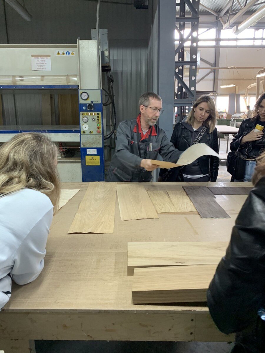 Шпонирование — тема сложная с большим количеством нюансов, которые влияют на конечный вид изделия. Например, на раскладку шпона влияет то, чем мы планируем красить изделие и какого эффекта мы хотим добиться. Из этих целей выбирают один из видов раскладки: книжная, прямая, прямая с перекладкой или смешанная. Все эти моменты нужно учитывать, именно поэтому мы знакомим наших заказчиков с особенностям работы со шпоном.