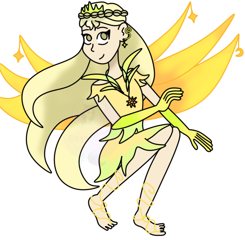 Вдохновением для платья и крыльев Клэр стал цветок гузмания. Этот цветок может быть как красным, так и жёлтым. В жёлтом цвете он очень похож на ананас. Я решила, что такой яркий цветок отлично подойдёт для жизнерадостной Клэр.