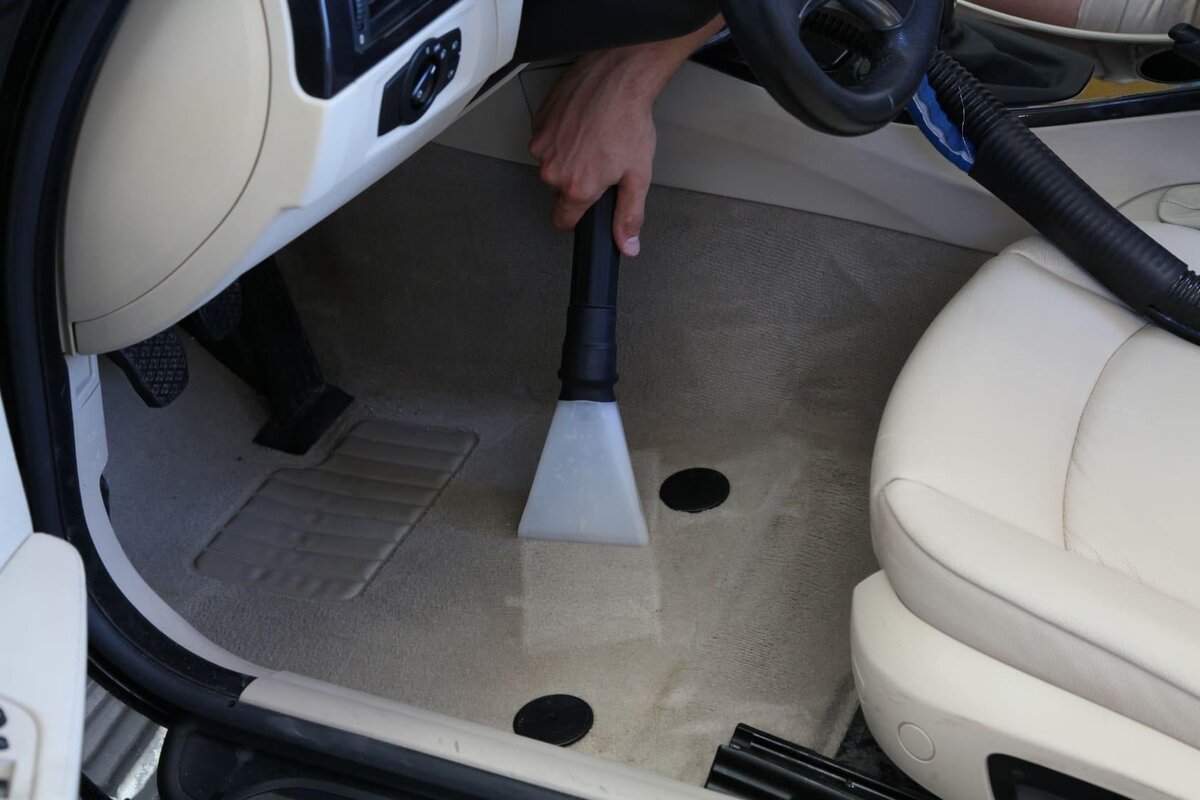 - Подготовка к химчистке. Для начала нужно убрать всë, что мешает химчистке, то есть коврики и сиденья. Далее убираем крупный мусор и начинаем тщательно пылесосить ковролин, можно использовать сразу насадку с щëткой, так будет эффективней.