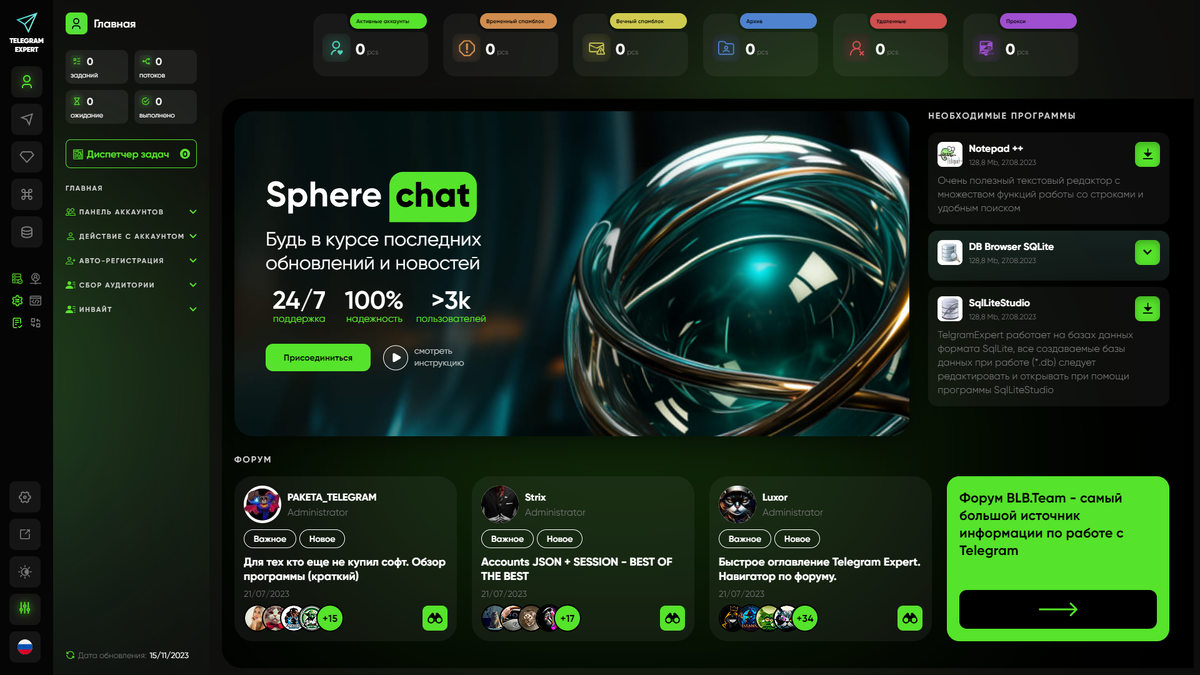 Telegram Expert позиционируется как максимально гибкий в настройках и функциональный софт для пользователей с самым разным уровнем опыта, от новичков до профи.