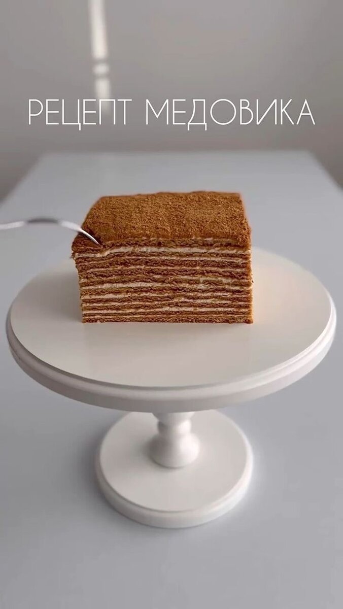 Ингредиенты: -Сливочное масло (100 грамм) -Сода (10 грамм) -Сахар (200 грамм) -Яйца (3 шт.) -Мёд (130 грамм) -Мука (600 грамм) Приготовление: В кастрюлю кладём сливочное масло комнатной температуры,соду,сахар,мед и яйца. Всё хорошо перемешиваем и ставим на плиту. На маленьком огне постоянно помешивая , доводим смесь до момента , когда масло полностью растает и сахар раствориться. Масса также должна посветлеть и увеличиться в 2-3 раза. Снимаем её с плиты и сразу же всыпаем просеянную муку. Муки может понадобиться ,как и больше, так и меньше. Поэтому всыпайте не всё сразу. Тесто вымешиваем, делим на 10 равных частей, закрываем каждую часть пленкой и отправляем в холодильник отстаиваться, чтобы оно стало чуть плотнее. После этого раскатываем его на пергаменте, разрезаем круги диаметром 20 см. Далее протыкаем вилкой и отправляем выпекаться в духовку разогретую до 180 градусов, примерно на 5 минут до золотистого, румяного цвета. Крем: -Сливки -Ванилин -Сметана 25% (2 баночки по 380