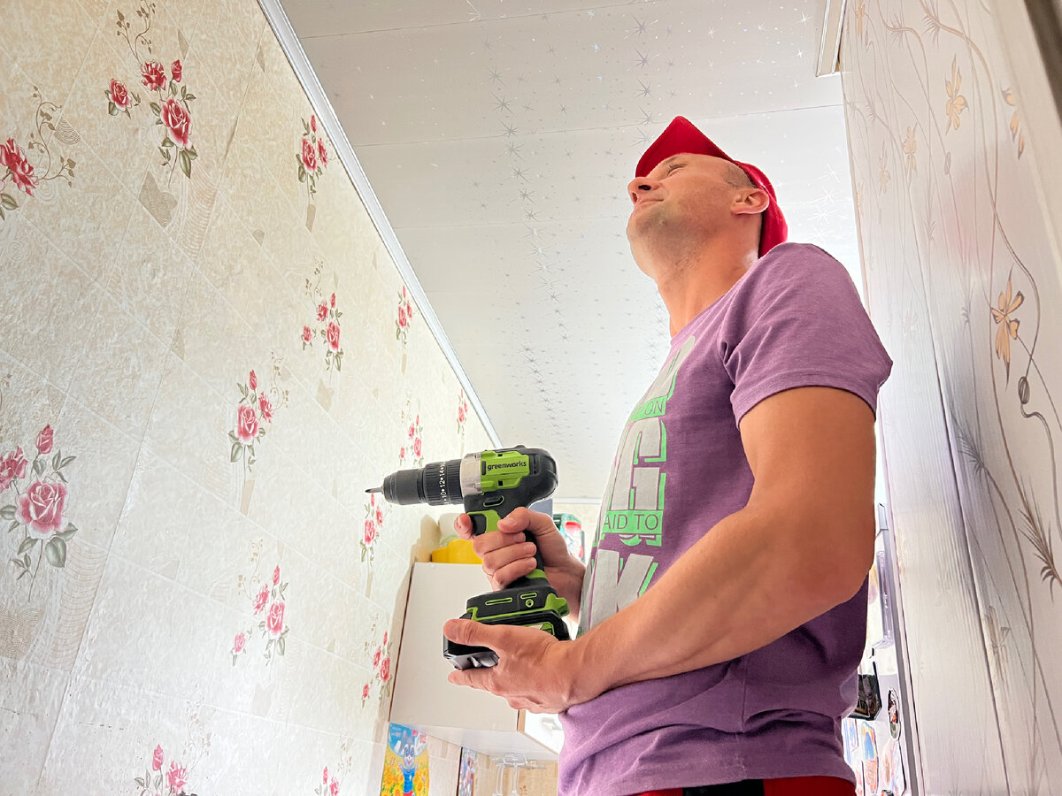 Мастера корпели-работали целый день до вечера. Оказалось, что у нас кривая стена, и кое-что надо перепилить.
