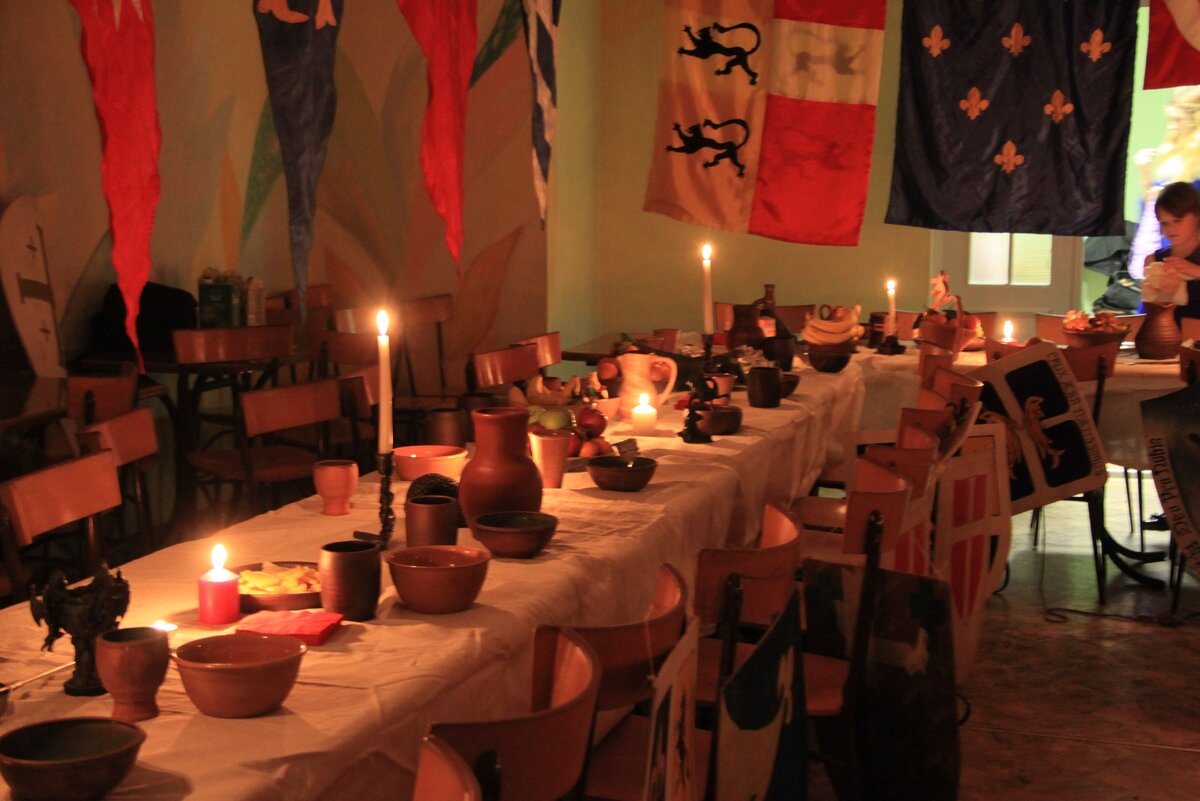 Зимний рыцарский пир! Это мероприятие проходит раз в год и является традиционным корпоративом для нашей школы. Чтобы отдохнуть от спортивных турниров мы устраиваем этот необычный корпоратив. Здесь мы отдыхаем и проводим время по «рыцарски». В нашей программе — средневековые танцы Разнообразные интерактивы Детские турниры на разном мягком вооружении Рыцарский турнир в честь прекрасных дам Ну и конечно сам пир в средневековом антураже! У нас могут присутствовать все — как младшие ученики, так и взрослые. И так же мы рады просто пришедшим к нам в гости! Не за горами очередной зимний декабрьский пир! Мы уже готовимся и будем рады новым друзьям!