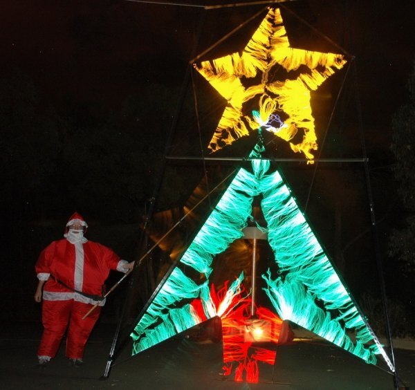 Красивые эксперименты с высоким напряжением. Елочка сияет и переливается всеми цветами радуги.