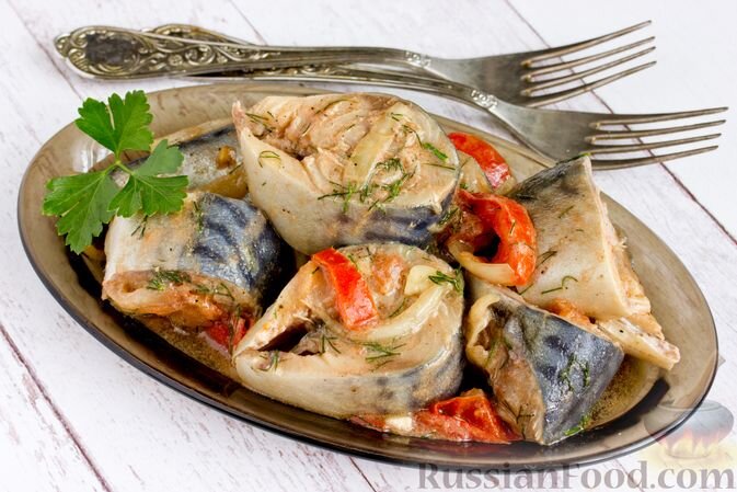 Маринованная скумбрия. Рыба с апельсинами, сыром и орехами. Рыбные зразы с печенью трески. Рыба с картошкой и помидорами. Рыбная долма. Рыба с апельсинами, сыром и орехами – интересное рыбное блюдо простого приготовления. Филе рыбы запекается с дольками апельсина, измельчёнными грецкими орехами и сыром. Рыба получается сочной и ароматной. Рыбные зразы с печенью трески. Для любителей печени трески этот рецепт просто находка. Внутри рыбных котлет – кусочки консервированного деликатеса. Получается необычно и очень вкусно. Рыба, запечённая с картошкой и помидорами, – удачный способ просто и вкусно приготовить рыбу. Филе минтая запекается между слоями картошки, лука и помидоров. Сметанный соус с чесноком и зеленью придаёт особый вкус и аппетитный аромат. Рыба, запечённая с овощами в виноградных листьях. Филе рыбы маринуется с луком, чесноком и лимоном. Затем кусочки рыбы смазываются сливочным маслом с анчоусами и заворачиваются в виноградные листья вместе с помидорами и перцем (сладким и о