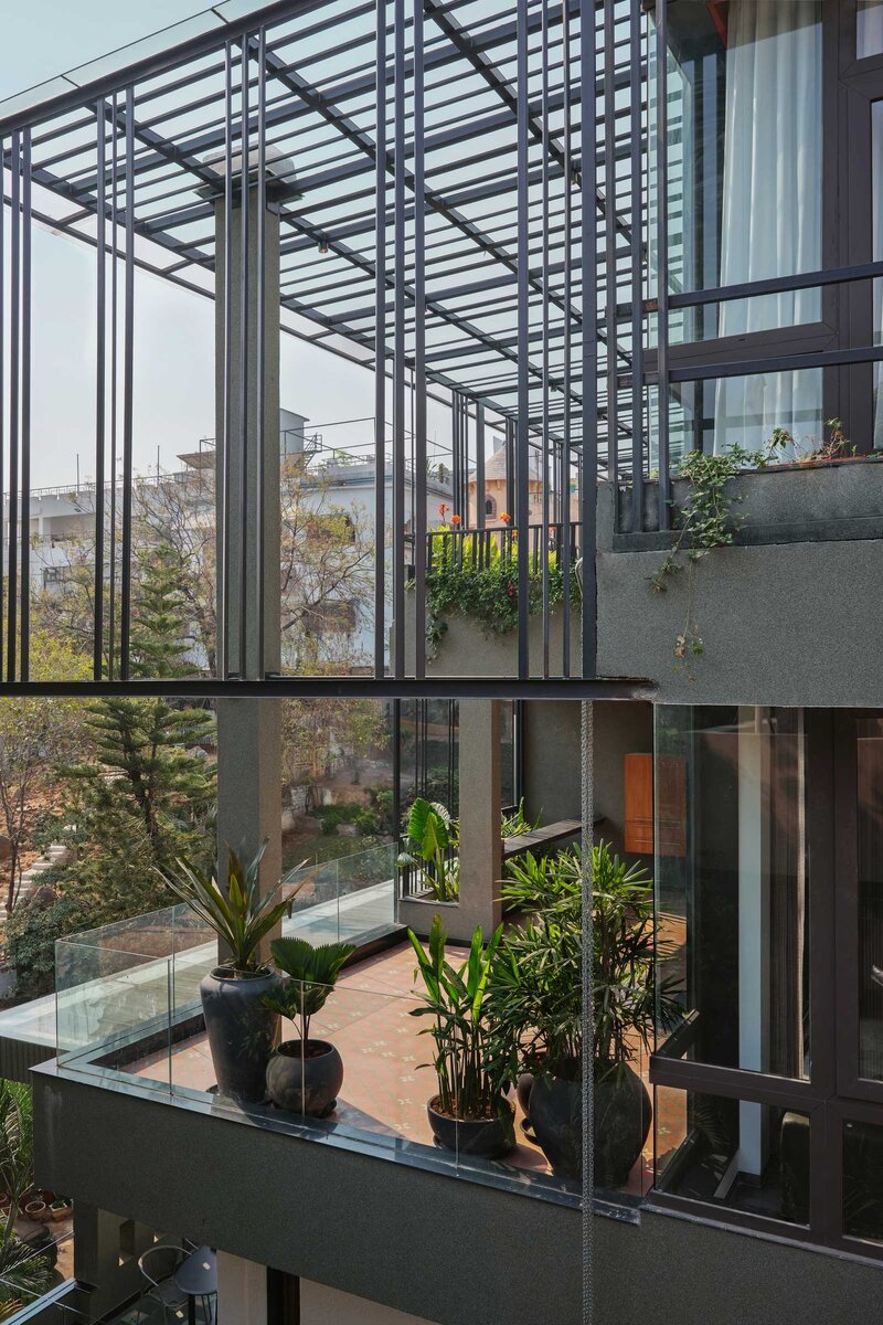 В районе Джубили-Хиллз в Хайдарабаде местная многопрофильная студия NaaV реализовала поразительный семейный дом, в котором традиционные элементы индийского дизайна сочетаются с современной эстетикой. Клиенты родом из Хайдарабада — семья из четырех человек, принадлежащая известной деловой семье. Они живут простой жизнью и разделяют страсть к путешествиям. Они владеют впечатляющей коллекцией антиквариата, в частности латунных артефактов. С точки зрения архитектуры дом сочетает в себе традиционные элементы индийского дизайна с современной эстетикой. Использование контрастных всплесков цвета на нейтральном фоне создает динамичное взаимодействие форм, текстур и материалов. Одной из уникальных особенностей дома является то, что он был расширен двумя дополнительными этажами с использованием существующих колонн конструкции. Подход к дизайну заключался в том, чтобы отдать дань уважения элементам индийской культуры, сохраняя при этом современный вид. Мы достигли этого, объединив традиционные инд
