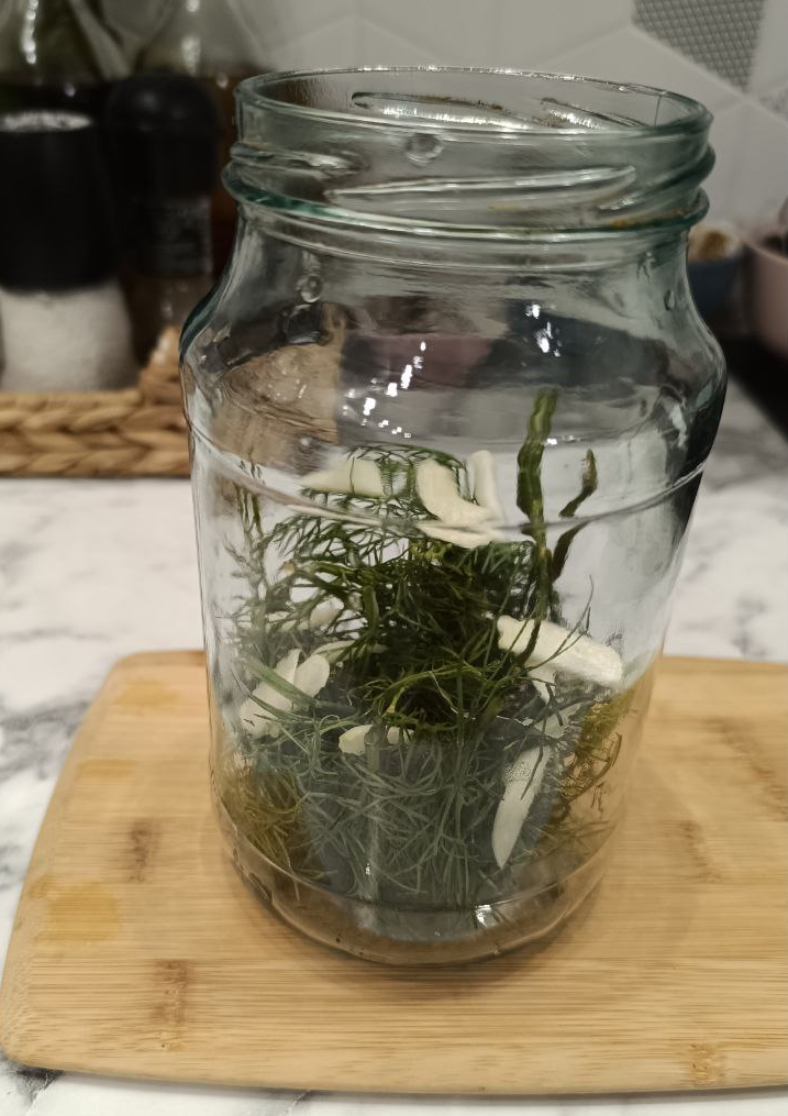 - Сахар; ОБЯЗАТЕЛЬНО!!! Заливаем банки крутым кипятком, оставляем на 5-7 минут и сливаем воду, чтобы простерилизовать всё содержимое. ГОТОВИМ РАССОЛ