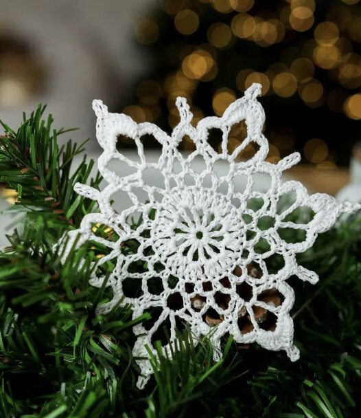 Вяжем уютный декор на Новый год. Пять простых схем хлопковых снежинок.
