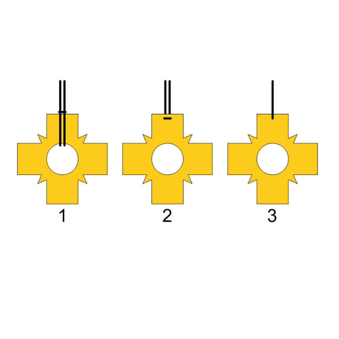 Прошу прощения за такие нерегулярные публикации – предновогодняя суета накладывает свой суровый отпечаток на режим работы :) На исходных рисунках крест, который висит на груди Ламы закреплен на каком-то коротком, вертикальном и прямом участке шнура. Но у меня толщина креста всего 2 мм и нет никакой возможности что-то ввинтить в его торец. Клеить тоже не хочется – конструкция будет хрупкой + можно случайно выпачкать сам крест. Или, что еще хуже, цианакрилат съест слой краски. Поэтому я предложил заказчику несколько вариантов крепления шнура на выбор. Больше всего ему понравился вариант №2 и мы прожгли два отверстия. Но это все цветочки. Нужно было как-то зафиксировать крылья, и не просто так, а под определенным углом к фронтальной плоскости. Раз уж никто не смог подготовить мне нужные детали, я опять решил поискать что-то готовенькое :) Я изготовил трафарет угла и отправился по хозяйственным магазинам. Тут, повезло не так быстро, как строительным ведром, но я нашел то ли поднос, то ли р