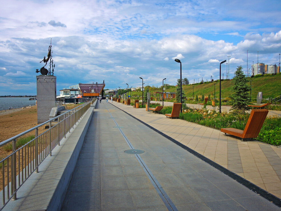 Продолжаю рассказ о прогулке по Автозаводскому району Тольятти в августе 2023 года. Все материалы о Тольятти можно посмотреть по ссылке ниже. Мы осматриваем первую очередь обновлённой набережной. Во время реконструкции в 2022 году здесь был установлен арт-объект. Это скульптурная композиция «Прикосновение к древности». Её автор - скульптор Карэн Саркисов. В сети есть ролик, где сам автор рассказывает историю создания. Он говорит, что это не был заказ, это был полёт творчества. Скульптура находилась в его галерее, где её увидел директор группы компаний «Волгатрансстрой» Вячеслав Сонин. По его инициативе объект и был перевезён в Тольятти. Композиция продолжает общую морскую тематику получившегося пространства. Куйбышевское водохранилище, на берегу которого находится Тольятти, часто называют Жигулёвским морем. Некоторое визуальное сходство, действительно, есть. На мой взгляд, этот объект его удачно дополняет. Надеюсь только, алгоритм Дзена не найдёт в нём ничего криминального. Продолжение