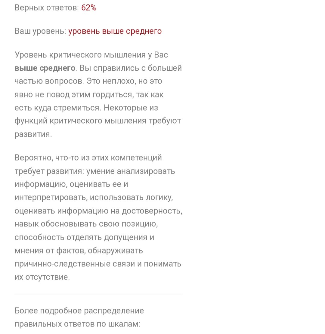Заодно делюсь своими результатами. Результат красиво и графически понятно оформлен. Наверно с универа не проходил никаких тестов, раньше они меня забавляли. Ну а кому не интересно узнать о себе всю правду, как обычно заявляют такие тесты и конечно же это не правда. Однако! Доля истины в них, безусловно, есть. Вот вам ссылка на тест, свои результаты выкладываю ниже. Отдельно мне очень интересно как вы ответили на вопрос с дверьми, которые нужно выбрать. Почему-то все заостряют на нем внимание, хотя вопрос, по сути, простой как три копейки) У меня как видно какой-то огромный провал в креативности, который утянул на дно мой общий результат и сделал его чуть выше среднего)) В общем, ничем особенным я не выделяюсь и выдающимися данными не обладаю. Отдельно мне не нравится, что нет ответов, чтобы учесть свои ошибки или понять где ты налажал, по мнению авторов теста. А самое интересное как авторы измеряют те или иные направления. А и под конец я понял, какие тесты мне нравятся, а какие н