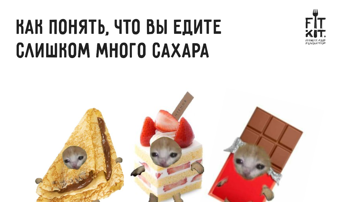 Я намеков не понимаю, подскажите, что конкретно он имеет в виду? Привет, на связи FITKIT! Сегодня хотим разобраться, какие SOS-сигналы подает организм, когда мы перебираем с сахаром и почему важно на них реагировать. Осень. Все прелести лета закончились. И вот мы уже снова с утра выпиваем сладкий кофе, чтобы хоть как-то взбодриться, хватаем шоколадную булку и бежим на работу. На обеде перекусываем сникерсом, а вечером балуем себя любимыми вкусняшками за просмотром сериала! Ведь сладости — одно из немногих, что может поднять сейчас настроение. Но в какой-то момент сахара становится слишком много, и в организме начинают происходит внутренние изменения, о которых он аккуратно нам намекает. Как это вовремя отследить? Давайте разбираться! А есть ли норма? Согласно рекомендациям ВОЗ (и Роспотребнадзор тут солидарен), взрослым стоит сократить дозу сахара до 10% от суточного энергопотребления, а лучше даже до 5%, то есть примерно до 25 граммов (или шести чайных ложек) в день. Превышение норм