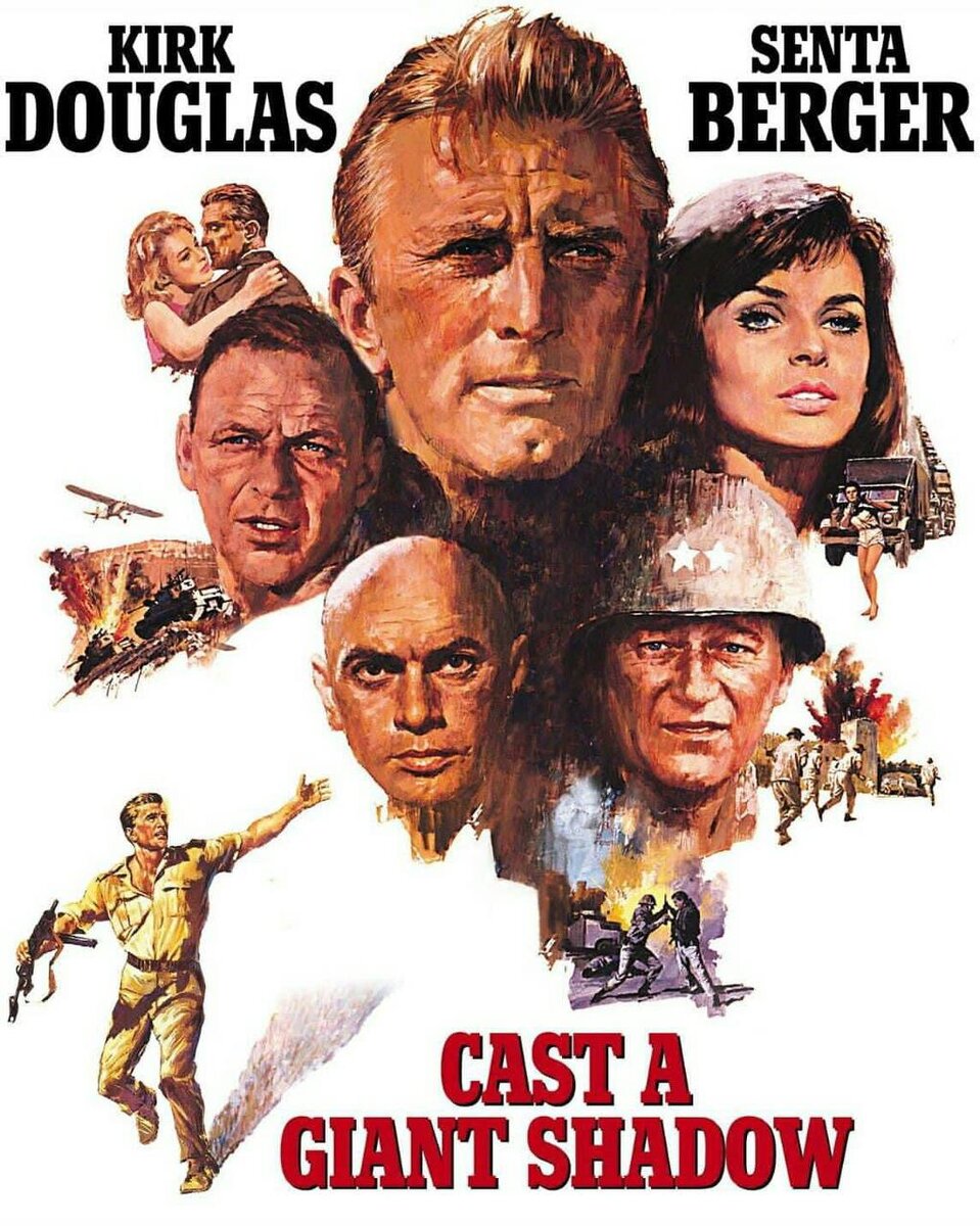Посмотрел «Откинь гигантскую тень» (Cast a Giant Shadow) (1966), про создание государства Израиль в 1948. Я собирался этот фильм посмотреть ещё в 1993, да всё не получалось. Оказалось, реально неплохо. В главных ролях наши земляки Кирк Дуглас (Изя Данилович) и Юл Бриннер (Юлий Бринер). На вторых ролях Джон Уэйн и Фрэнк Синатра. Первая небольшая роль Майкла Дугласа. В фильме постарались воссоздать обстановку и вроде получилось, с 1948 по 1966 прошло не так уж много лет. Странное название фильма, это английская идиома означающая «оставить след в истории/памяти». . Нынешняя ситуация Израиля опрелеляется историей, а 1948 был одной из ключевых дат. Вгенные действия начались ещё в 1947 после решения ООН о создании Израиля. А после провозглашения Израиля 15 мая 1948 война активизировалась. Восемь арабских стран напали на Израиль. Египет, Иордания, Сирия, Ливан, Саудовская Аравия, Йемен, Ирак. Население было больше раз в 100. Но армия Израиля по численности превосходила армии коалиц