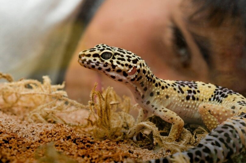 Пятнистый эублефар-это некрупная,пустынная ящерица,вырастает в среднем до 25см.Она живёт в полу пустынях,пустынях или же в каменистых пустынях. Для содержание в домашних условиях нужен террариум размером минимум 30х30х30см,укрытие,влажная камера,поилка,декор,термоковрик или термош- нур,грунт (специальные коврики,кокосовый субстракт,коксовые чипсы,пробковое или другое самодельное,похожее на это покрытие . Для кормление эублефара нужны живые или замороженные сверчки,тараканы. Их нужно обмакивать в кальций и витамины для рептилий,подавать их лучше с пинцета или сделать кормушку. (Писал от руки)