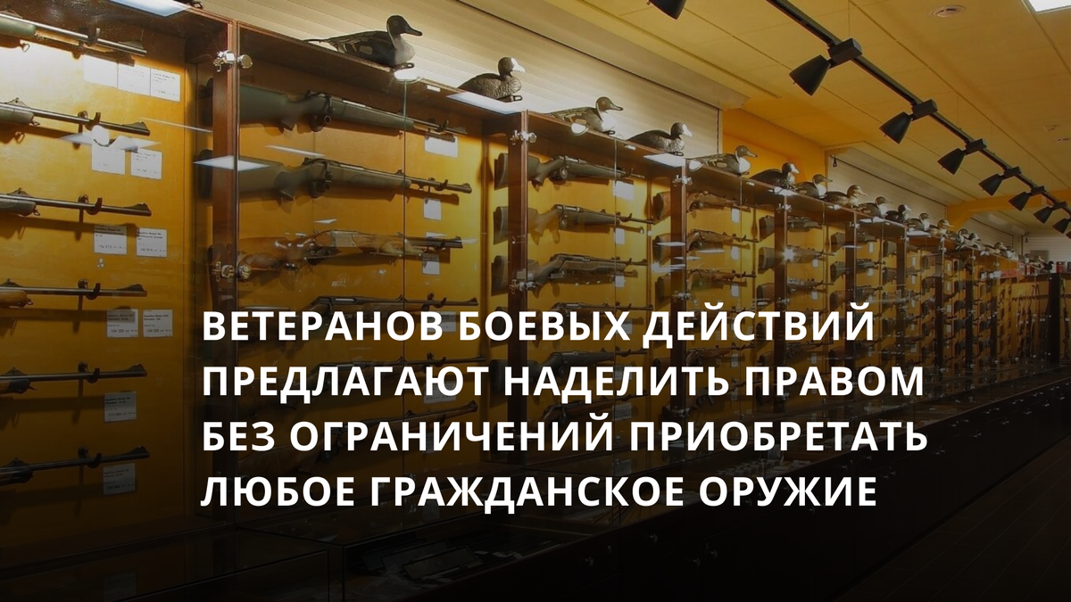 Законопроект предлагает отменить для ветеранов боевых действий ограничения в виде необходимости обучения владению оружием и стажа владения. То есть если законопроект будет принят в том виде, как его описывает Выборный, ветеран боевых действий сможет без ограничений приобретать любое гражданское оружие.